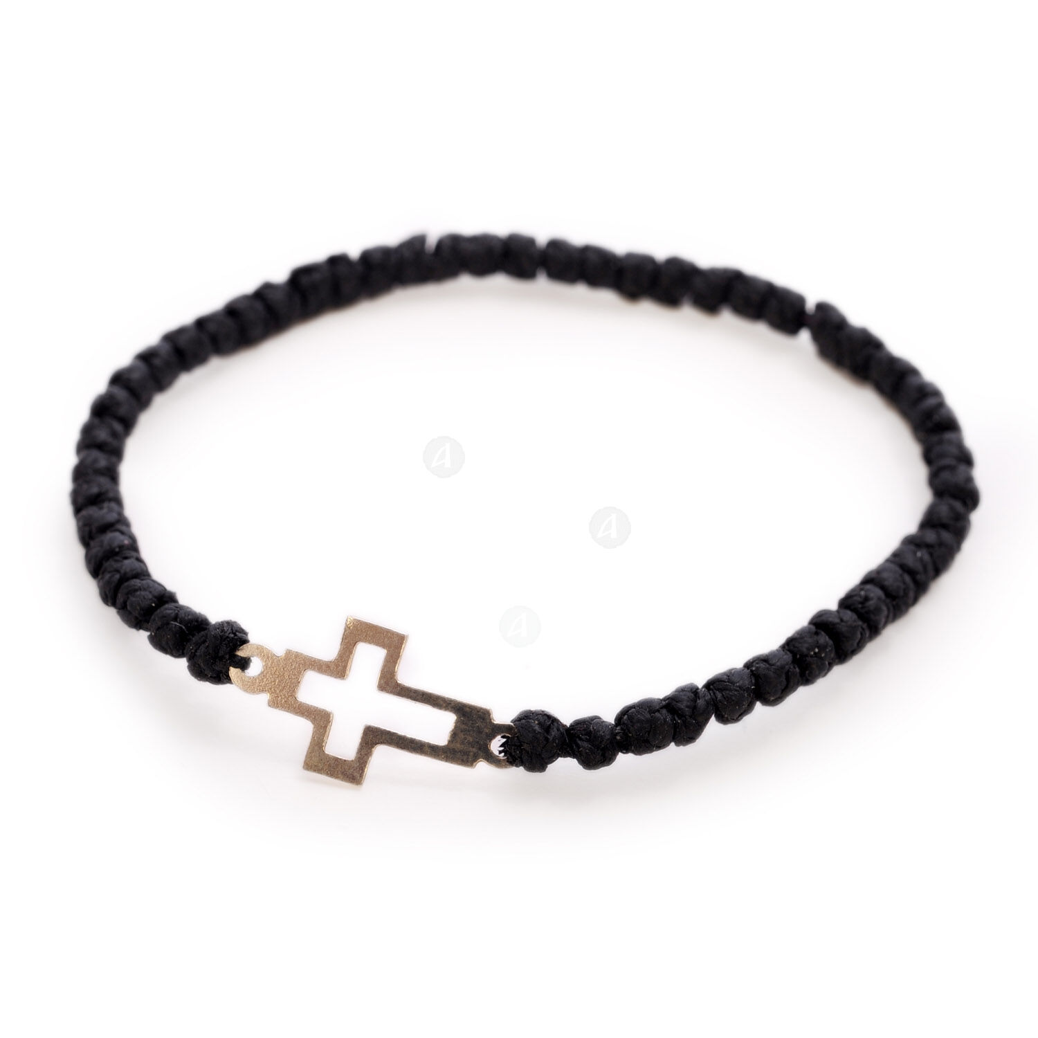 Silk prayer rope (komboskini) in black color with slim knots and a handmade cross made of 925° silver.