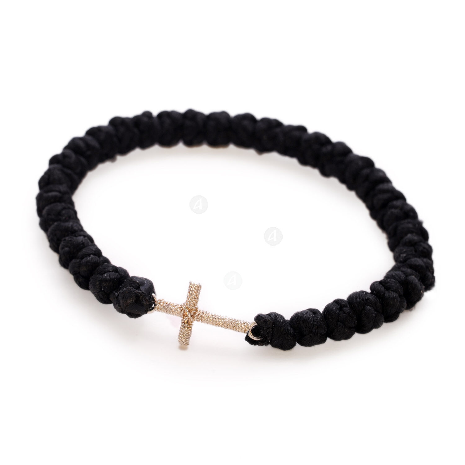 Silk prayer rope (komboskini) in black color with handmade cross made of 925° silver.
